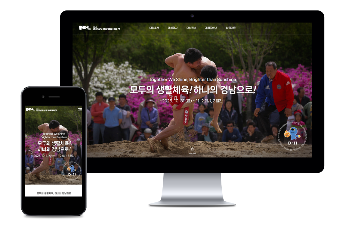 밀양시 일원에서 개최되는 제36회 경상남도 생활체육대축전 공식 홈페이지입니다. 전체적으로 생활체육대축전 정보를 한눈에 볼 수 있게 메뉴 구성을 상단 고정형으로 디자인하여 사용자 인터페이스 편의성을 극대화시켰습니다. PC와 모바일 홈페이지 디자인 통영을 위하여 반응형 시스템으로 구축되었으며 전체적인 디자인을 간결하게 구상하였습니다.